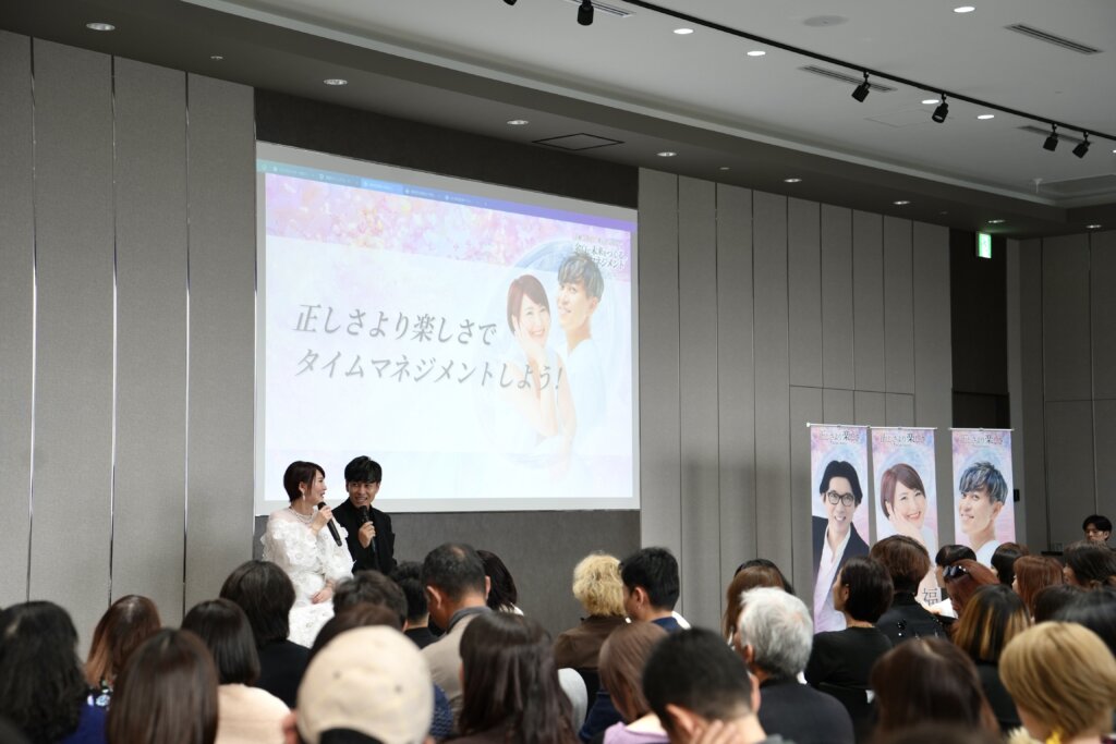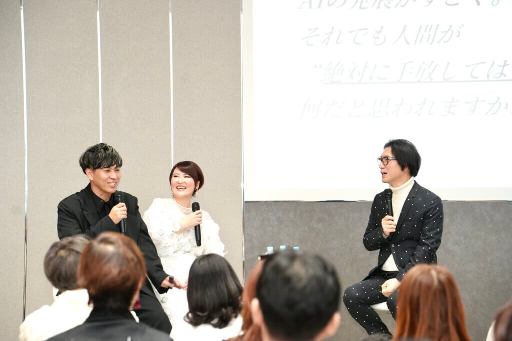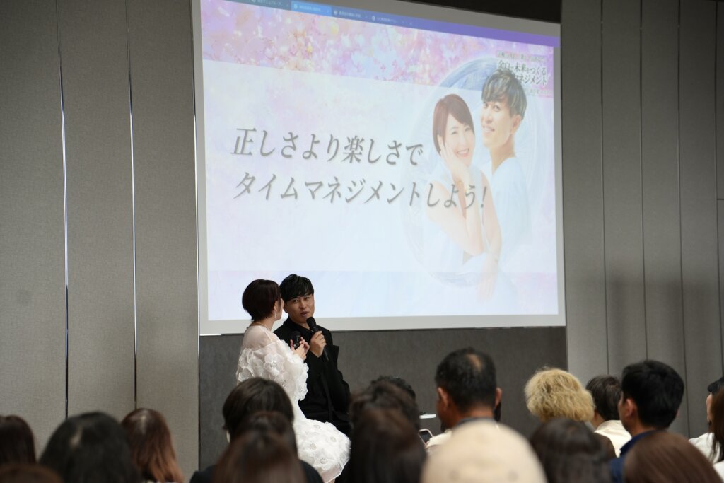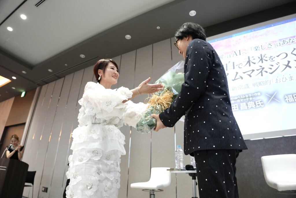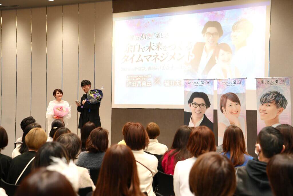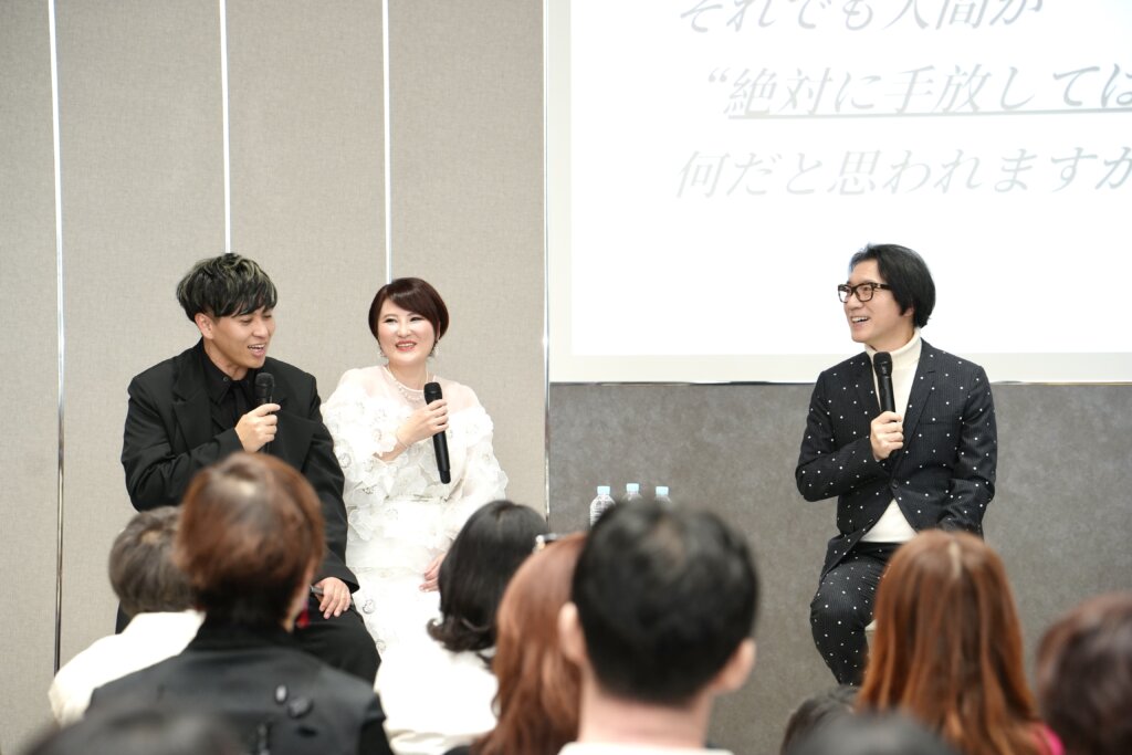 今回のハイライトのひとつが、神田昌典さんと福田夫妻による記念対談でした。この対談では、ノウハウの話だけではなく、これからの時代における働き方・時間の使い方・人間の価値の出し方について、深い視点が交わされました。特に多くの方の心に残ったのが、「余白」というテーマです。講演会後、僕らのもとには、